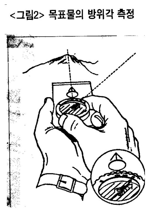 A). 다음은 그 나침반을 가지고 목표물이 보이는 지형에서 방향을 측정하는 방법<그림2>이다.
