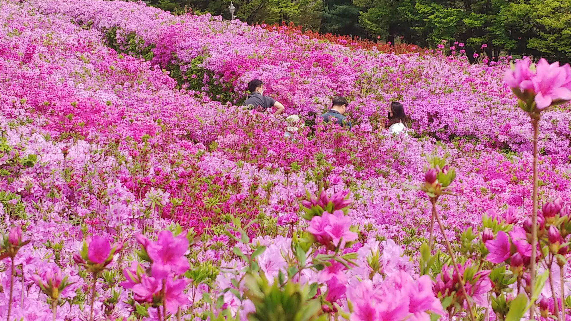 막상 철쭉공원에 도착하니 철쭉이 많이 피기는 했지만 약 60% 수준의 개화 상태인 것 같습니다.
