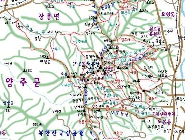 서울특별시 도봉구와 경기도 의정부시 호원동, 양주시 장흥면의 경계에 있는 산.